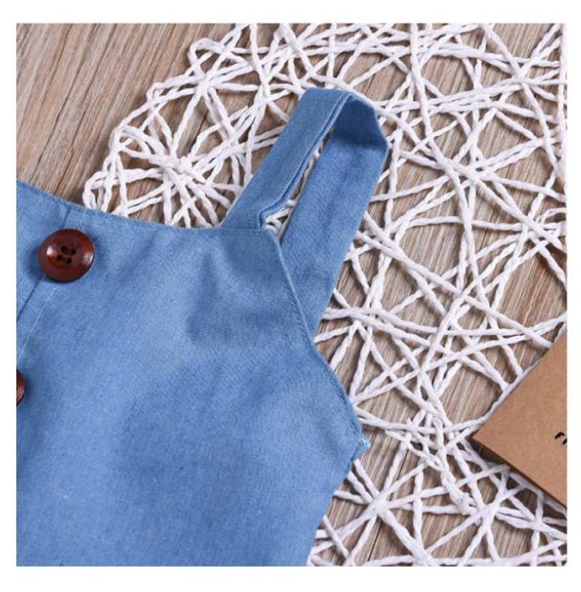 | 夏にピッタリキッズ用デニム上下セット。 ペプラムデザインはかわいいポイント! ボトムがウエストゴム仕様なのでストレスフリーな履き心地。 ウエスト可愛いリボン付き、肌触り感優しい綿混素材なので快適な履き心地。 | |
