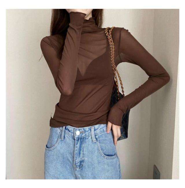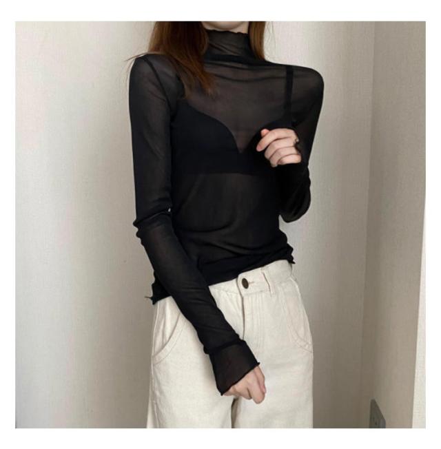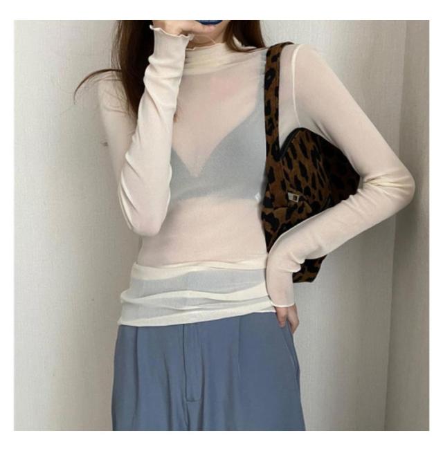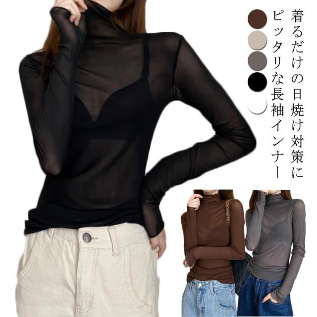 シアートップス 長袖 薄手 シアー トップス ハイネック レディース UV対策 紫外線対策 接触冷感 クール冷感 シースルー トップス レイヤード インナー セクシー 肌見せ きれいめ ミセス 20代 30代 40代 50代 送料無料