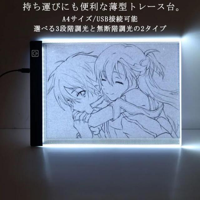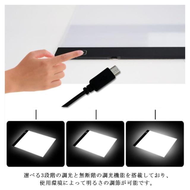 トレース台 A4 LED 無段階調光機能付き ライトテーブル ライトボックス USB 薄型 コンパクト 軽量 トレス台 製図 書道 検査台 透写台 ライティングボード ライトボード 模写 お絵かきボード 光のテーブル