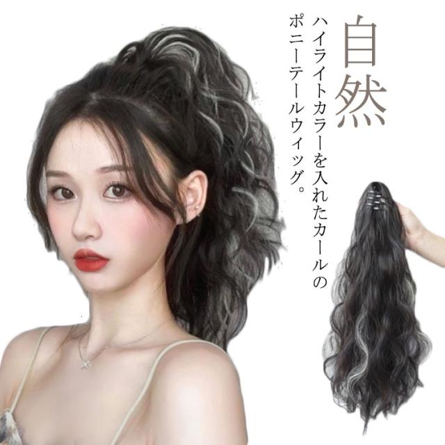 ポニーテール ウィッグ ハイライトカラー ウィッグ カール ウェーブ 自然 部分ウイッグ つけ毛 セミロング 女性 キッズ ポニーテールウィッグ ワンタッチ エクステ クリップ ふんわり 結婚式 ダンス ハロウィン コスプレ 原宿 ブラウン 茶色 黒 ブラック 送料無料