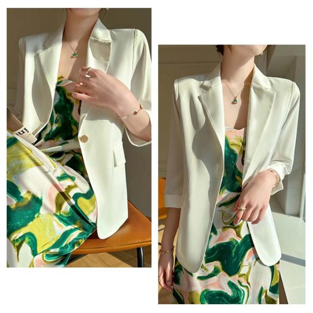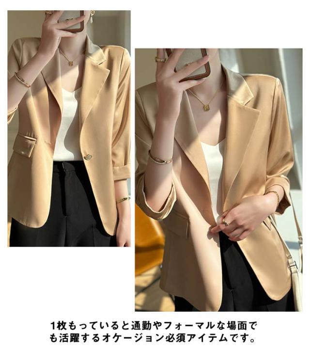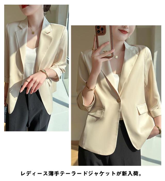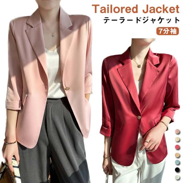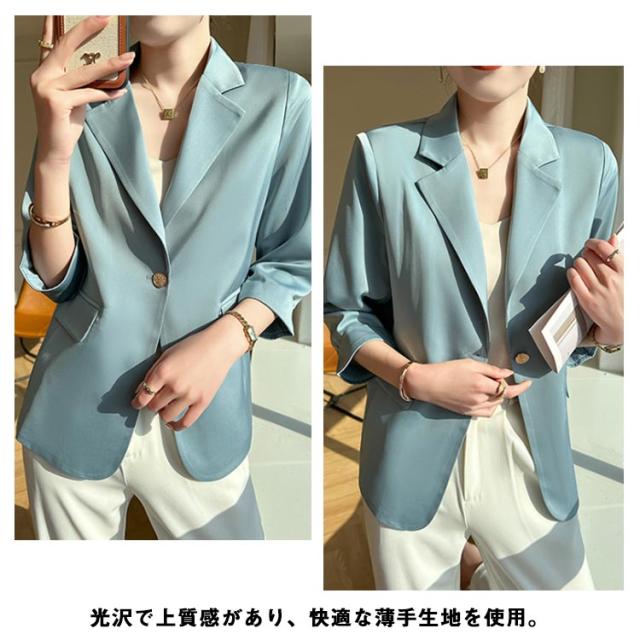 サマー ブレザー テーラードジャケット 薄手 カジュアルジャケット 7分袖 オフィス サマージャケット 上品 エレガント 春 夏 テーラードジャケット レディース フォーマル ジャケット 通勤 サマーブレザー ライトアウター 結婚式 入学式 卒業式 パーティー 送料無料