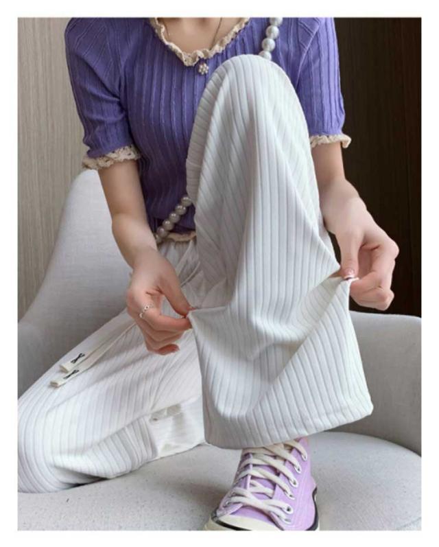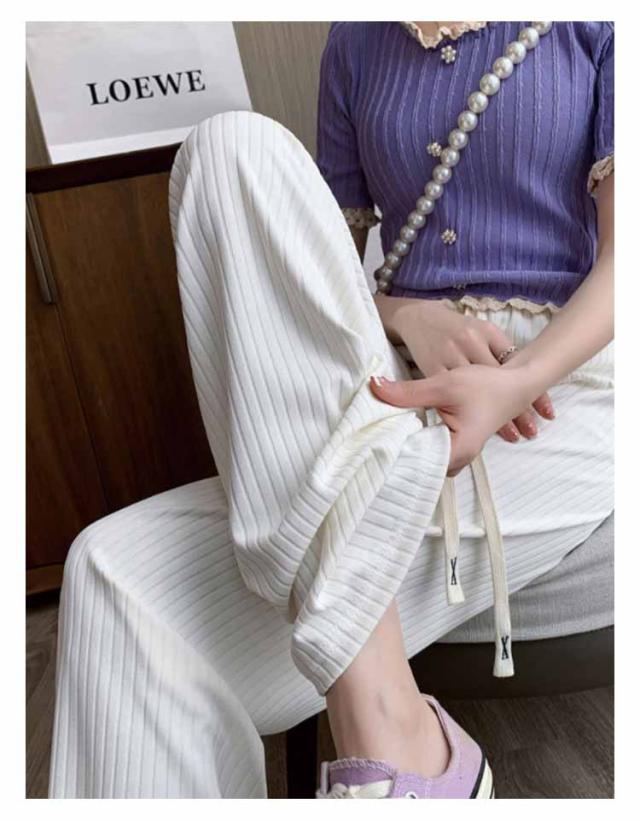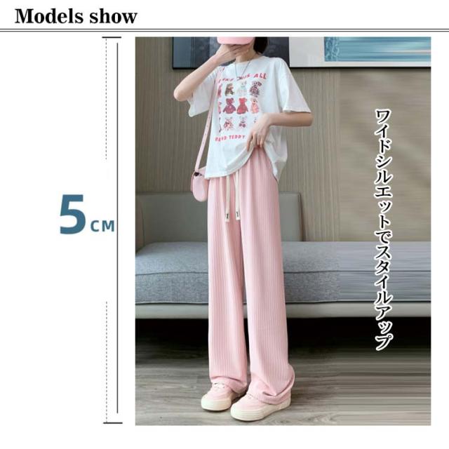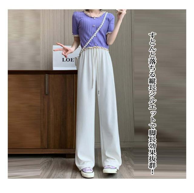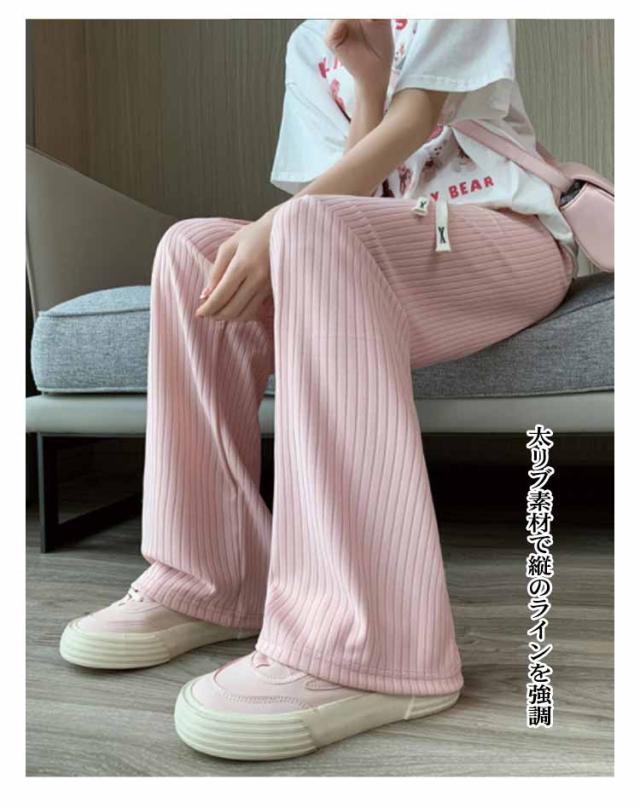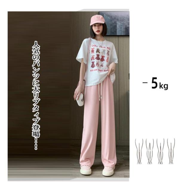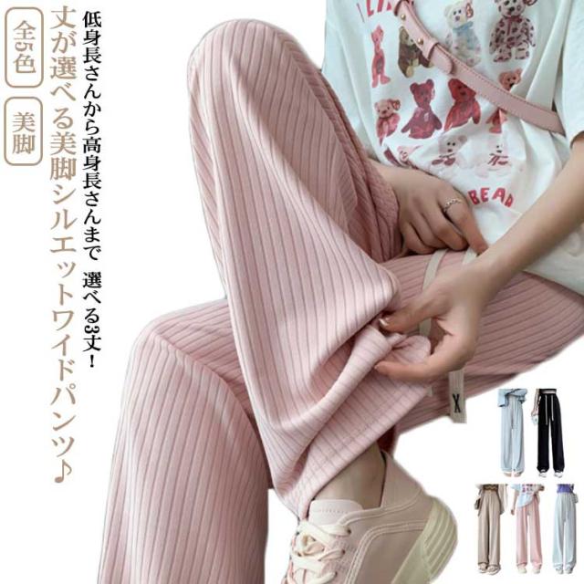 太リブ イージー ワイド パンツ 夏 ボトムス ズボン リブ 全5色 美脚 ウエストゴム 楽ちん ゆったり 大きめ カジュアル 無地 春 夏 流行 大人可愛い レディース 低身長 高身長 ゆるシルエット 韓国ファッション 送料無料