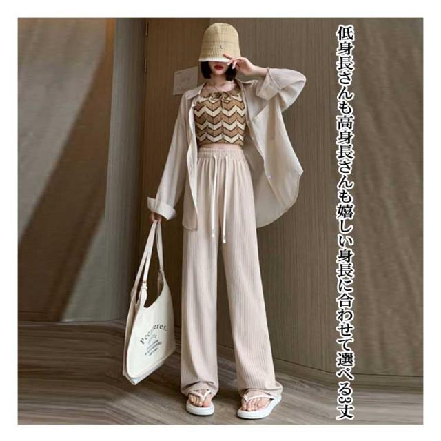 | 【低身長さんから高身長さんまで 選べる3丈! 丈が選べる美脚シルエットワイドパンツ♪】 人気のパンツに太リブタィプ登場!! ワイドシルエットでスタイルアップ すとんと落ちる縦長シルエットで脚長効果抜群! 低身長さんも高身長さんも嬉しい身長に合わせて選べる3丈 太リブ素材で縦のラインを強調 ドロストタイプのウエスト紐がポイント 肌に優しいなめらかな手触り | |
