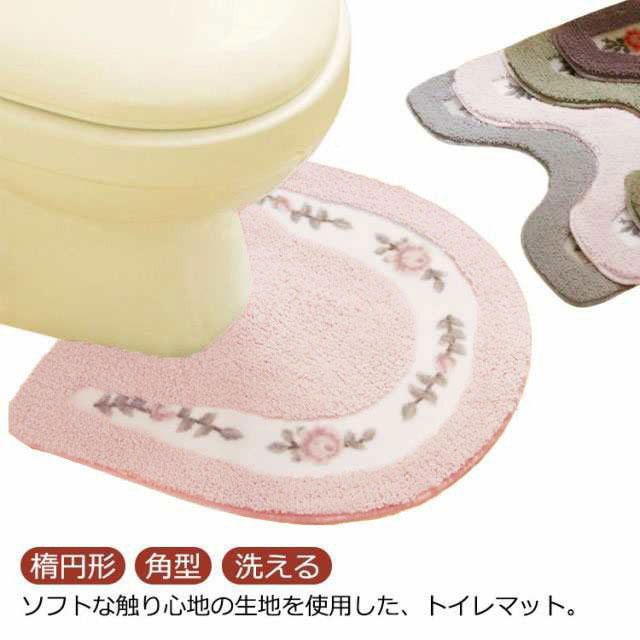 トイレマット 耳長 ロング 花柄 かわいい おしゃれ トイレ マット 吸水 洗える 洗濯 滑り止め もこもこ ふわふわ 楕円形 角型 トイレマット インテリア レトロ ヴィンテージ ピンク グリーン ブルー ベージュ パープル フラワー柄