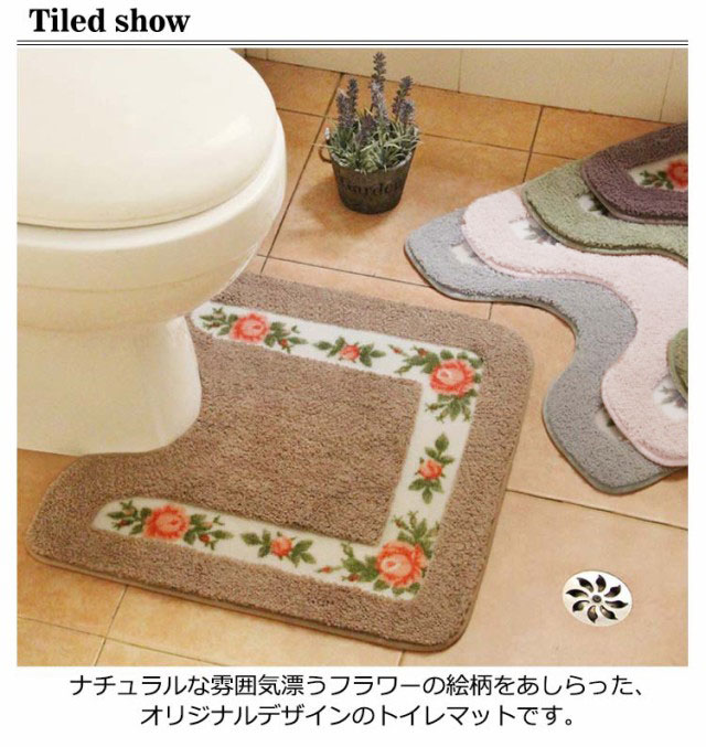 | ソフトな触り心地の生地を使用した、トイレマット。 ナチュラルな雰囲気漂うフラワーの絵柄をあしらった、オリジナルデザインのトイレマットです。 便器の形に沿うようカッティングしたフィットしやすい設計。 ポリエステル糸を使用したふわふわとやわらかな風合いで、使い心地も良好です。衛生面も考えられた抗菌防臭加工付き。 洗濯機で丸洗いできるので、いつでも清潔にお使いいただけます。 | |