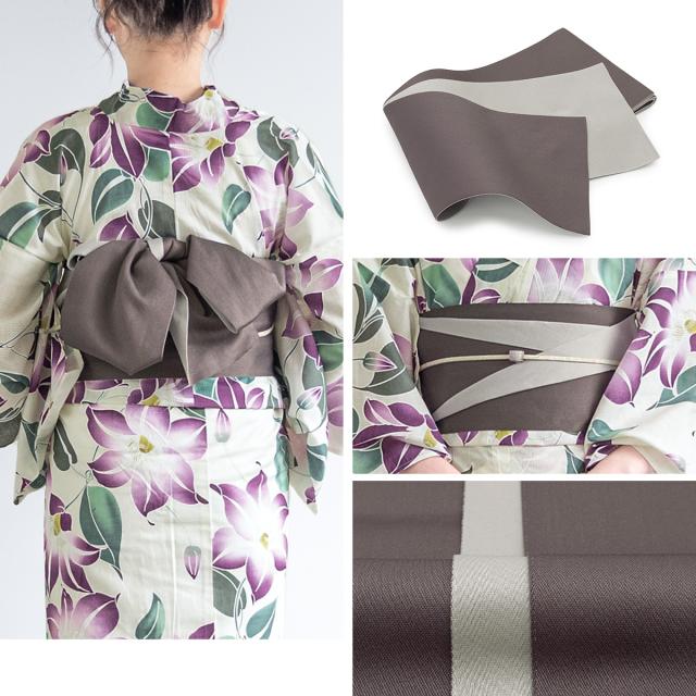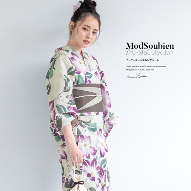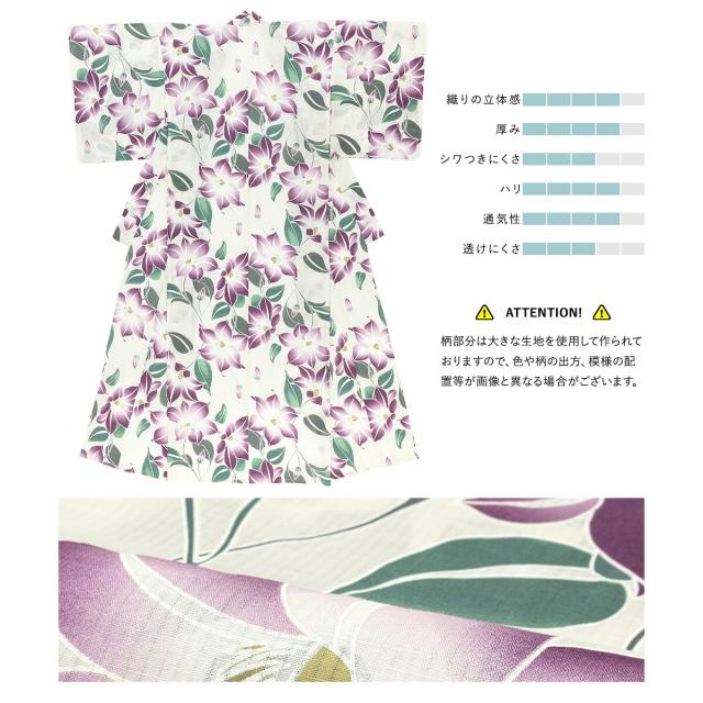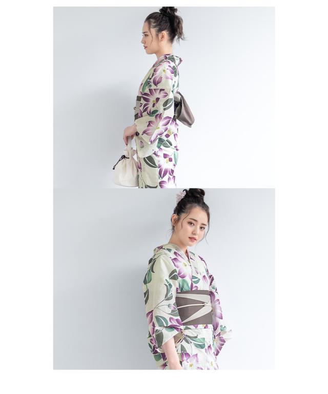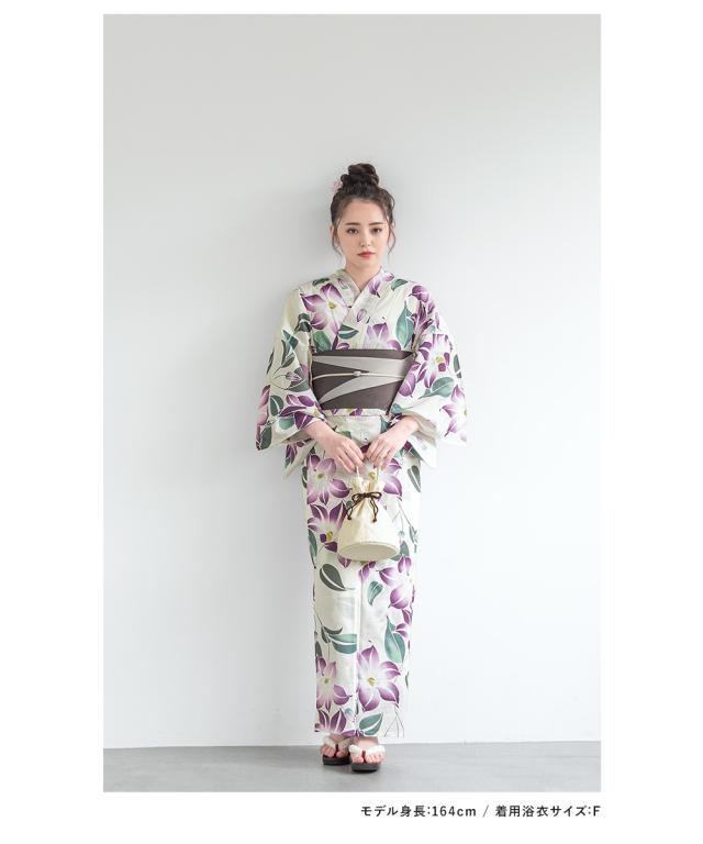 浴衣 セット レディース 浴衣セット 半幅帯 2023 大人 3点セット ホワイト 白系 パープル 紫 クレマチス 花 グレー フリーサイズ 送料無料