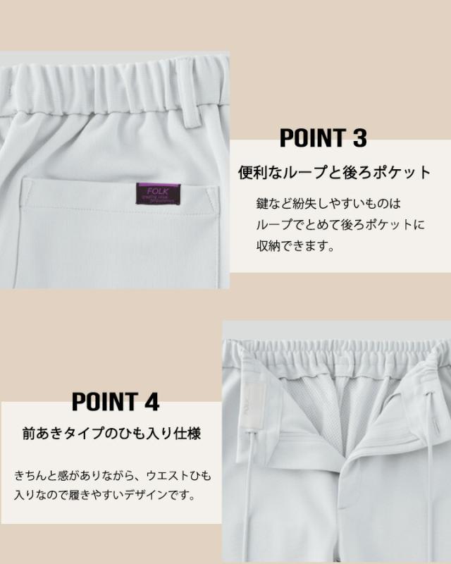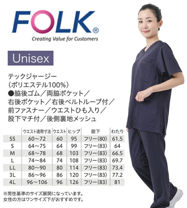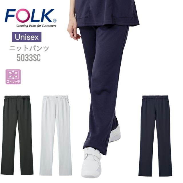 パンツ フォーク 5033SC 男女兼用 メンズ レディース ストレッチ 透け防止 医療 医師 薬剤師 医療白衣 看護師 介護 病院 ナース FOLK ストレッチ 白パンツ 医療系パンツ 透け防止 ネイビー
