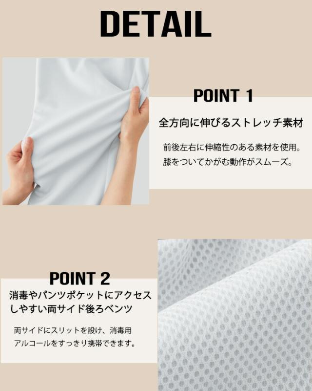 脇後ゴム 両脇ポケット 右後ポケット 右後ベルトループ付 前ファスナー ウエストひも入り 股下マチ付 後側裏地メッシュ