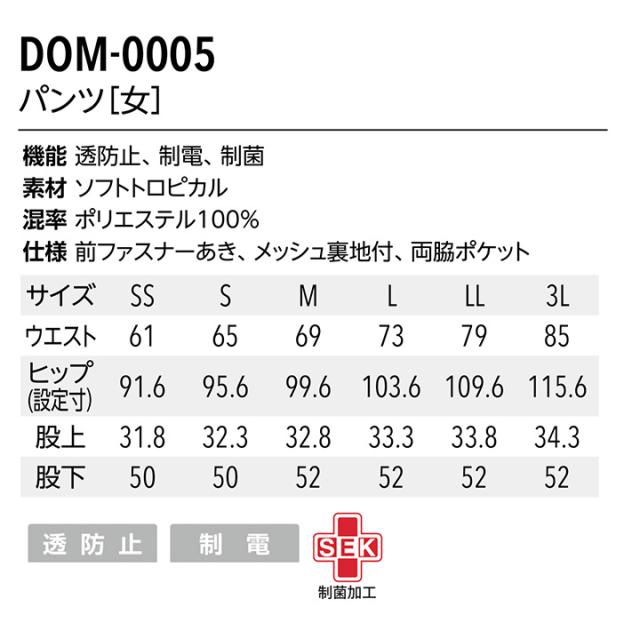 パンツ 女性用 DOM-0005 レディース 医療 白衣 看護師 医師 ドクター クリニック 病院 高級感 透防止 制電 制菌 オシャレ UNITE DIVISION OF ME チトセ ユナイト