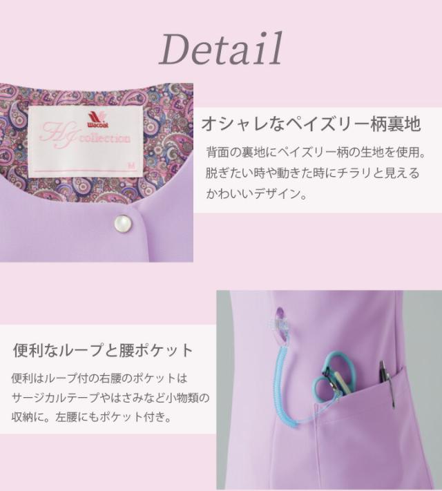 ワコール スクラブ フォーク HI710 女性用 レディース おしゃれ ストレッチ 医療 医師 医療白衣 歯科医師 看護師 j 病院 施設 クリニック 受付 美容外科 ナース ユニフォーム FOLK エステユニホーム ジップタイプ 上質 前開き