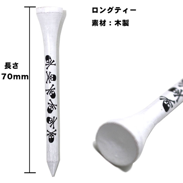 送料無料 ゴルフ ティー golf ロングティー 20本 70mm セット ドクロ柄 ロングティゴルフ用品 ラウンド ドライバー アイアン ゴルフティー セット