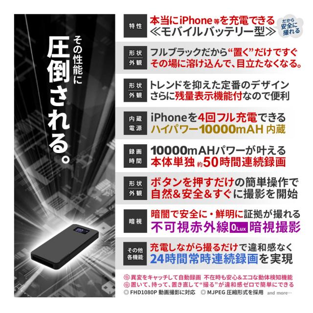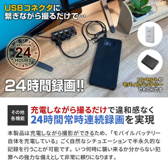 防犯カムカム mc-mc138 モバイルバッテリー型 50時間連続録画 夜間撮影も対応 実際にスマホ充電可能 小型カメラ 小型防犯カメラ 隠しカメラ スパイカメラ