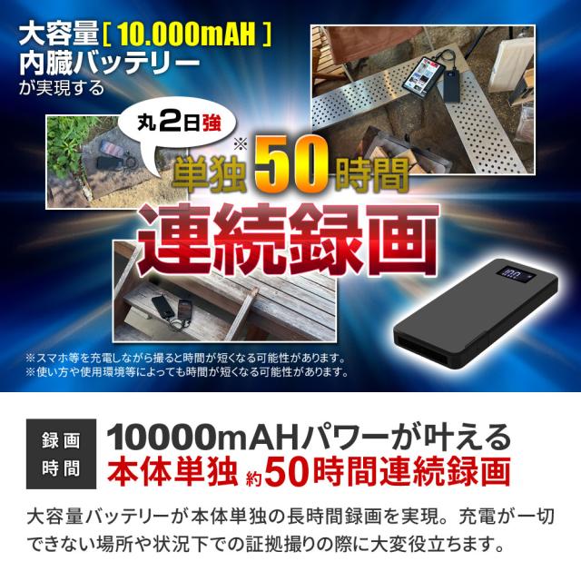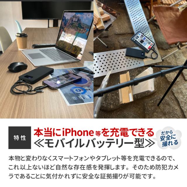 防犯カムカム mc-mc138 モバイルバッテリー型 50時間連続録画 夜間撮影も対応 実際にスマホ充電可能