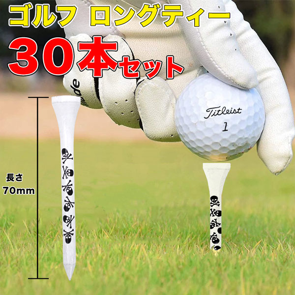 送料無料 ゴルフ ティー golf ロングティー 30本 70mm セット ドクロ柄 ロングティゴルフ用品 ラウンド ドライバー アイアン ゴルフティー セット