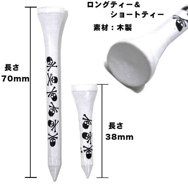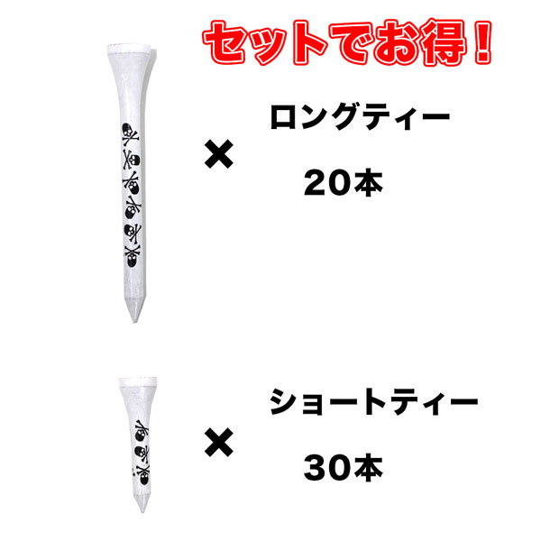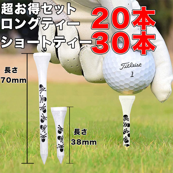 送料無料 ゴルフ ティー golf ショートティー 30本 38mm ロングティー 20本 70mm セット ドクロ柄 ゴルフ用品 ラウンド ドライバー アイアン ゴルフティー セット