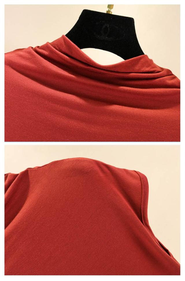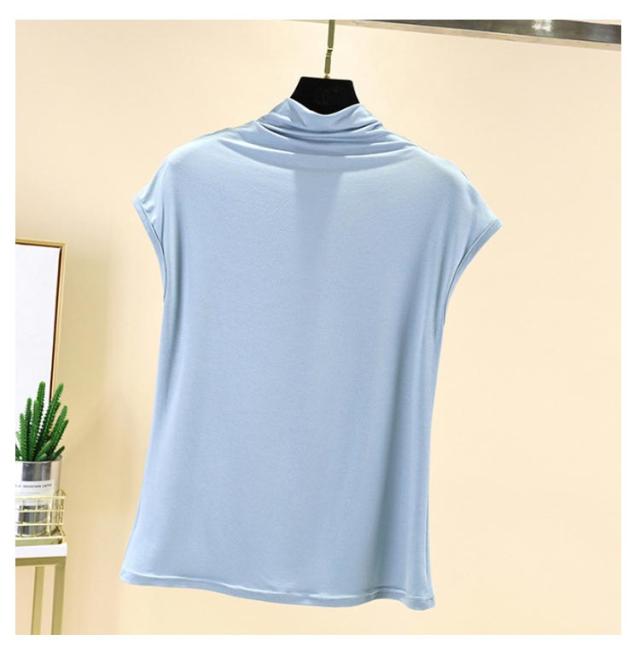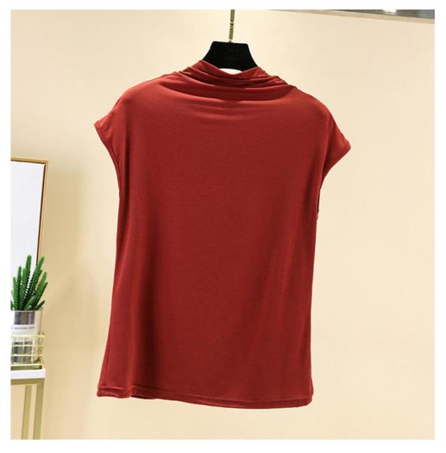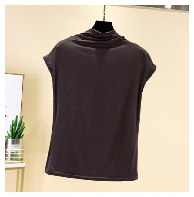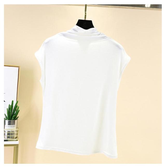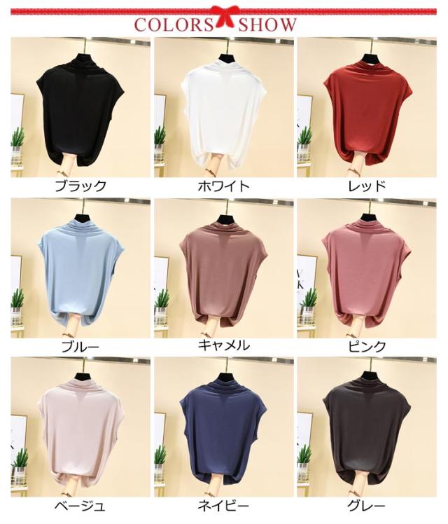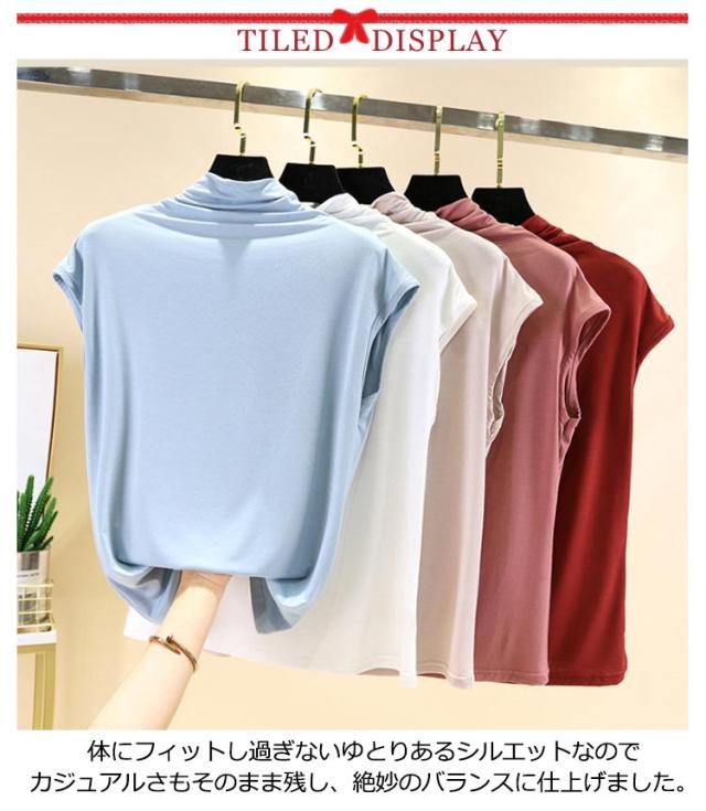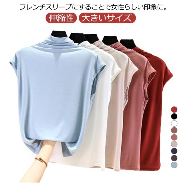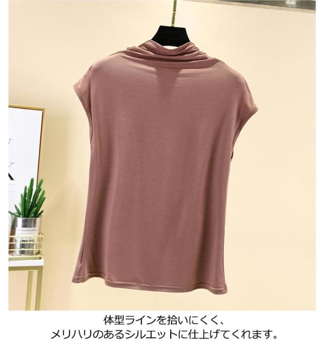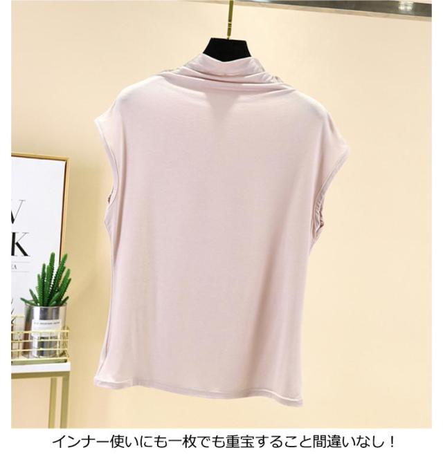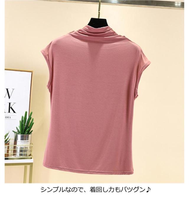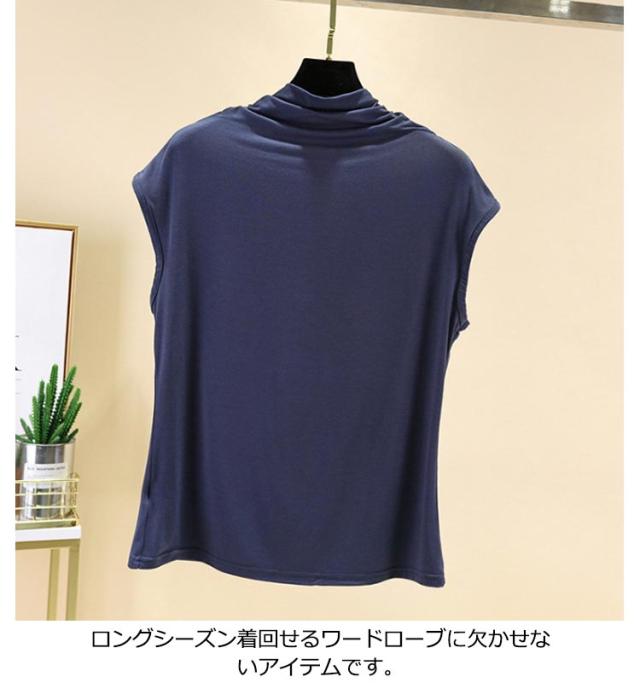 Tシャツ トップス ノースリーブ tシャツ フレンチ ハイネック ゆったり カジュアル レディース トップス 無地 大きいサイズ 春 夏 インナー ゴルフ 伸縮性 カットソー タートルネック シンプル M L XL XXL ゆったり 全9色 白 黒 送料無料