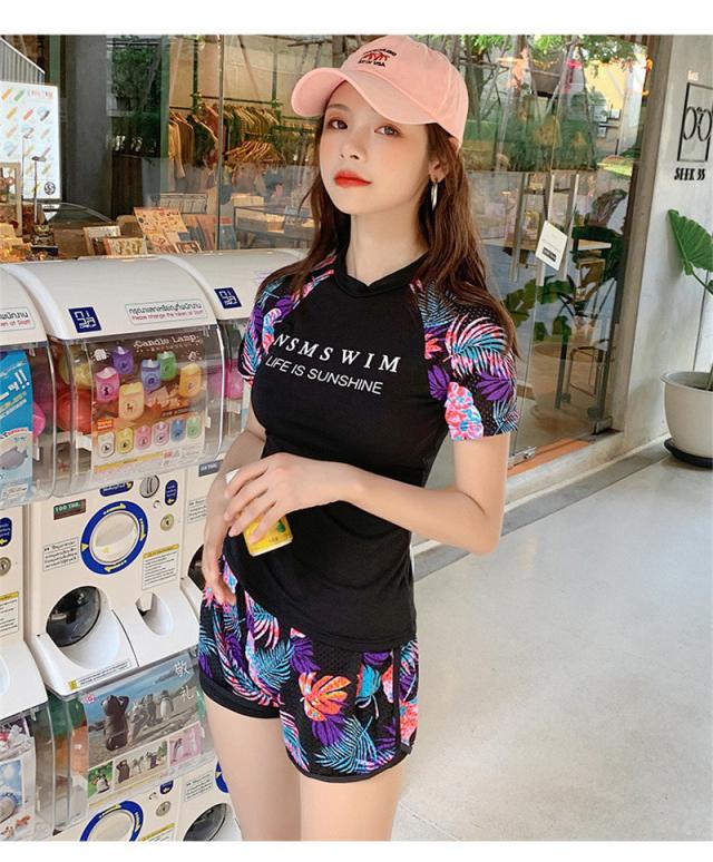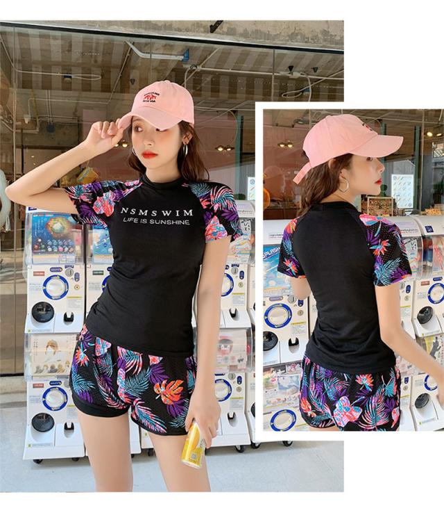 水着 レディース 体型カバー フィットネス水着 セパレート タンキニ 半袖 ショートパンツ ママ水着 スポーツ 運動 20代 30