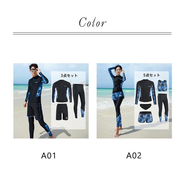 水着 長袖 ラッシュガード レディース メンズ 5点/3点セット 体型カバー UVカット フィットネス水着 ビキニ サーフィン レ