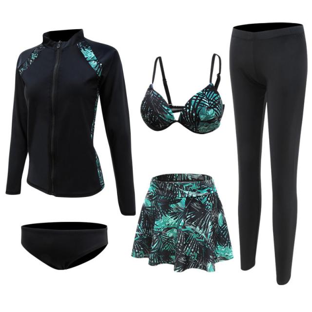 5点セット:ラッシュガード+スカート+ブラ+レギンス+ビギニショーツ