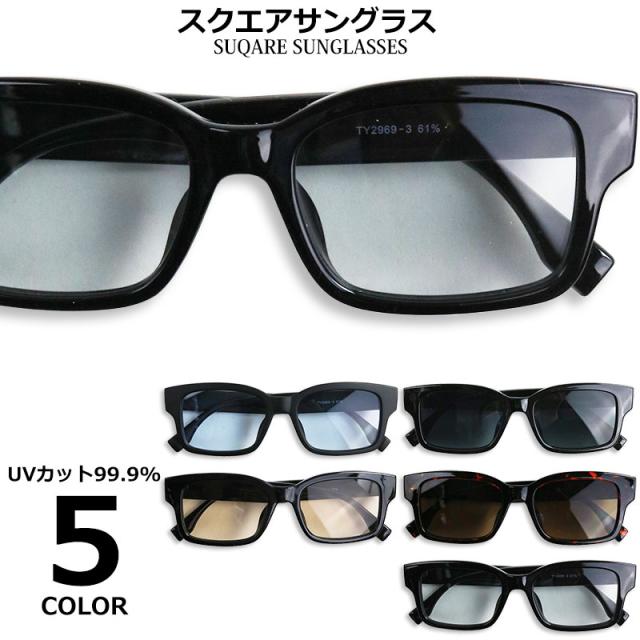 スクエア サングラス メンズ 四角 長方形 UVカット 伊達めがね ドライブ 男女兼用 イメチェン