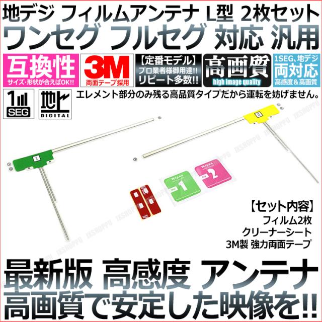 フィルムアンテナ L型 2枚セット 地デジ ワンセグ フルセグ 対応 最新 モデル 高感度 安定性 カーナビフィルムアンテナ 車 汎用 送料無料 エレメント 高感度 通電部 両面テープ 純正 互換 形状 クリーナー テレビ TV 高画質 互換品 ナビ 1SEG 電波 受信 フロントガラス 車用