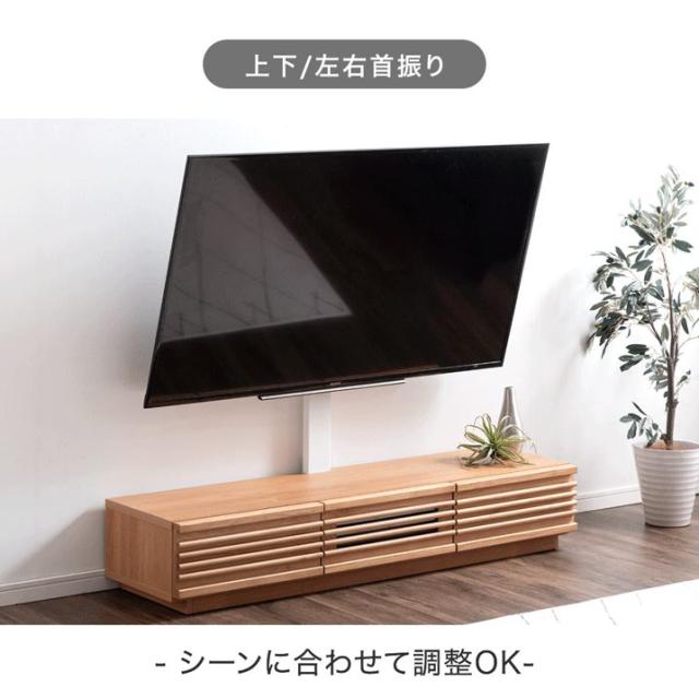 テレビ台 “置かない” 150 アルダー 無垢 スタンド付き ローボード 完成品 日本製 上下/左右 首振り 32~65インチ対応 壁寄せ 壁寄せテレビスタンド テレビスタンド 置かないテレビ台 国産 【超大型】【後払/時間指定NG】