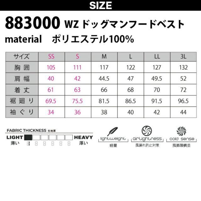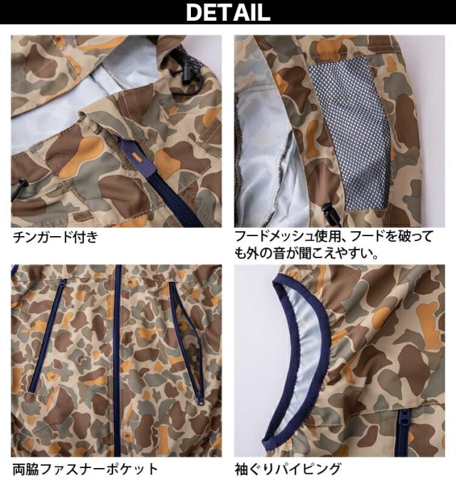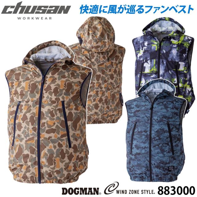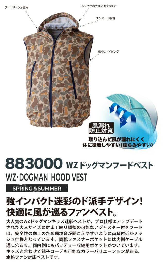 WZドッグマンフードベスト 883000 単品 ※ファンなし 迷彩柄 フードメッシュ 軽量 風漏れ防止対策 熱中症対策 EFウェア DOGMAN WINDZONE 中国産業 chusan