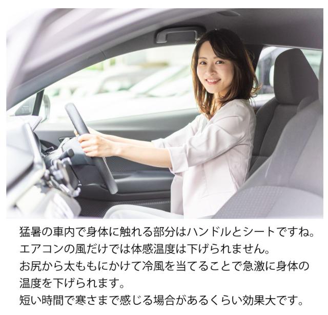 しばらく炎天下に放置した車内に乗り込んだ時の嫌な汗ばみ、、、。 そんな時はこのシートクーラー!! USB端子に差し込むだけで5個のファンと3段階の風量調整でお尻から太ももにかけて速攻冷却!!! ●身体を包み込み、シートやチェアにフィットしやすい絶妙な形状。 ●メッシュ素材で通気性抜群。 ●USB端子があればどこでも使用できるので、車のシート、テレワーク。モバイルバッテリーがあればキャンプやグランピングなどのアウトドアレジャーシーンでも活躍。 |