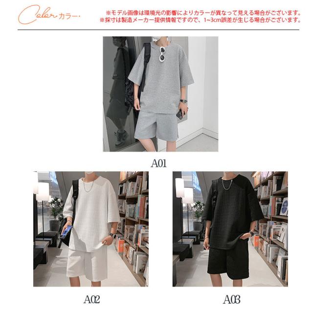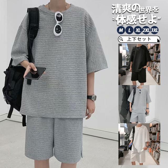 【水曜日まで!10%クーポン配布中】 セットアップ 上下セット メンズ 夏 Tシャツ ショートパンツ ハーフパンツ カジュアル ひんやり 父の日 ルームウェア 部屋着 ゆったり 快適 涼しい