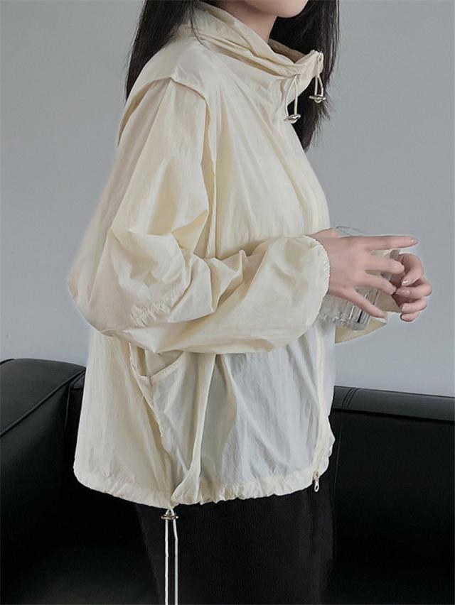 ラッシュガード 冷感素材 レディース メンズ ハイネック 飛沫防止 カーディガン 薄手 羽織り 冷房対策 水着素材 接触冷感 アウター シンプル ゆったり 涼感 UVカット ひんやり パーカー ロング丈 体型カバー 大きいサイズ 長袖 指穴付き UPF50+ 紫外線対策 日焼け防止 フード付き ポケット付き ジップアップ 帽子 新作