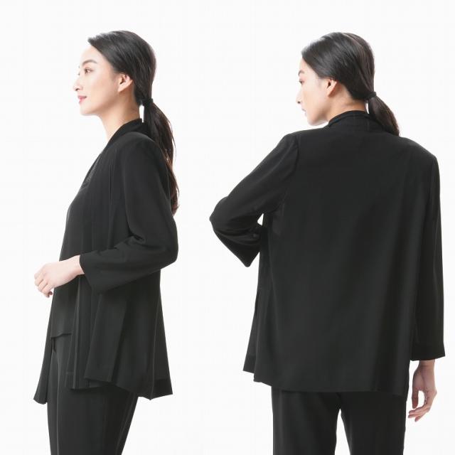 さっと羽織れる軽い仕上がりのトッパージャケット。衿に施したプリーツが優雅でしなやかな印象を与えます。