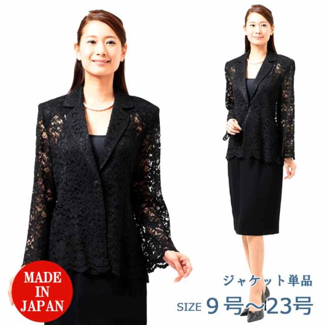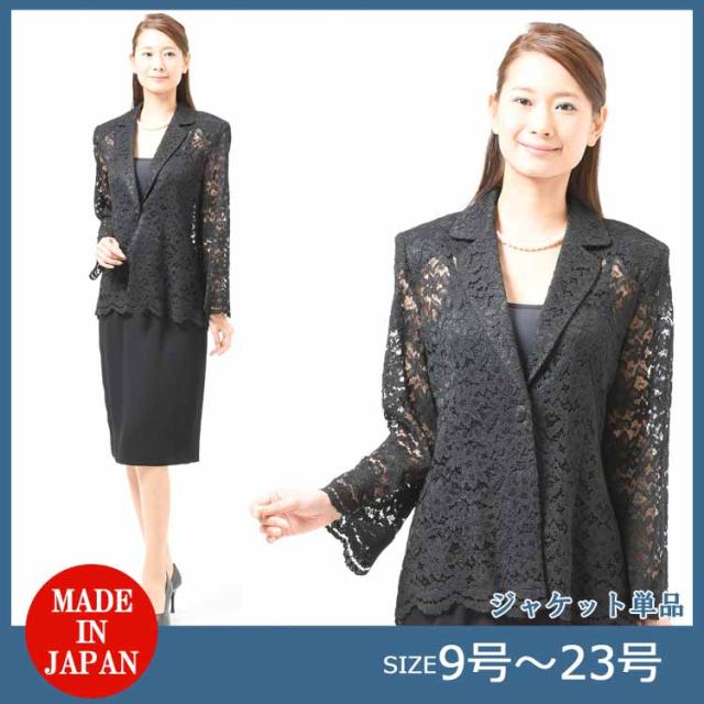 夏用 ブラックフォーマル レースジャケット レディース 婦人 礼服 喪服 :EU-456(ブラウス・ボトム別売り)【日本製】【9号〜23号】黒 大きいサイズ 冠婚葬祭 葬儀 葬式 通夜 法事 法要 礼装 サマーフォーマル