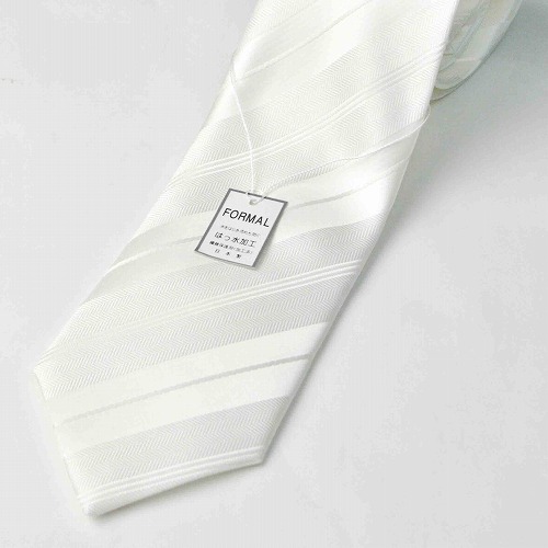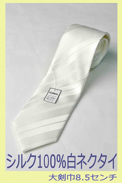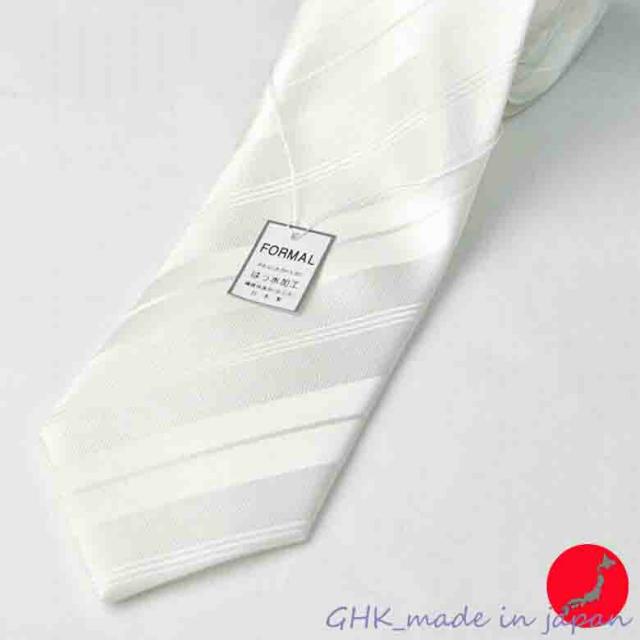 慶事用日本製 フォーマル シルク100%絹ネクタイ(オフホワイト色)JN007ストライプ柄サイズ大剣巾8.5cm【ネコポス便発送可】結婚式 披露宴 挙式 メンズ 紳士 フォーマルネクタイ 白