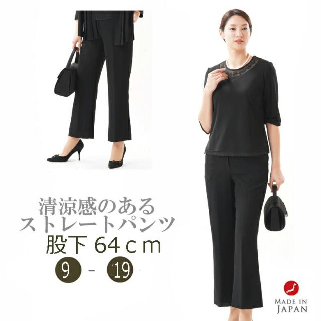 夏用 レディース ブラック フォーマル パンツ単品 大きいサイズ 21号まで 股下64cm 脇ゴム入りウエスト+6cm可 弔事 慶事 夏用 婦人 礼服 喪服 RL85782A ボトム ブラウス別売り 日本製 9号〜21号 黒 大きいサイズ 冠婚葬祭 葬儀 葬式 通夜 法事 法要 礼装