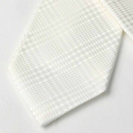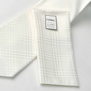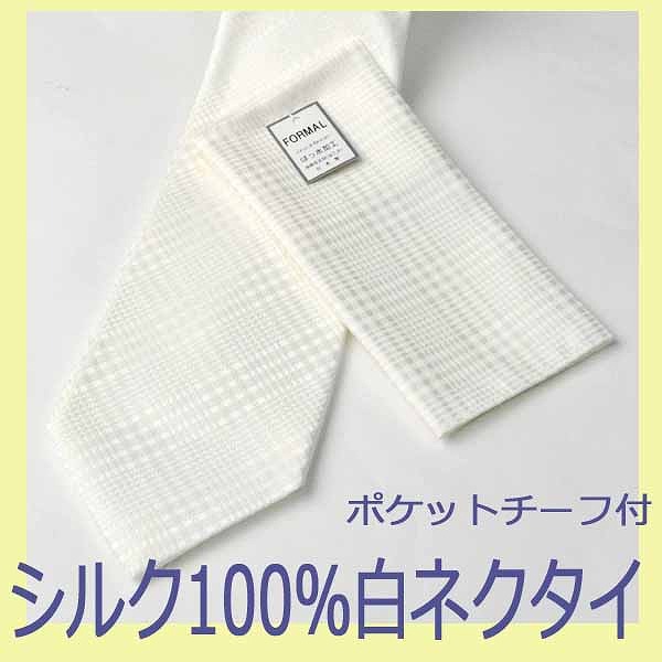 慶事用 ネクタイ&ポケットチーフ :JN012【チェック柄・オフホワイト色】ネクタイサイズ:142cm・大剣巾8.5cm 【シルク100%】結婚式用 メンズ 紳士 男性用 白ネクタイ 挙式 披露宴 フォーマル用