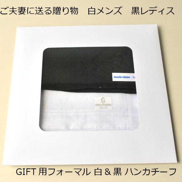 箱入りギフト用 レディースハンカチ ブラック とメンズハンカチ ホワイト ブランド マリ クレール ビス ジャンニバレンチノ JN9409BOX 綿100% 女性用marie claire bis 男性用GIANNIVALENTINO 弔事 ご夫妻用 法事のお返しに最適 メール便は1個のみ可 箱が変わる場合あり