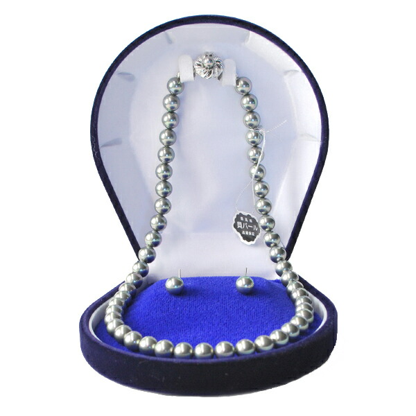 フォーマル用 高級金具の貝パール8mm玉 一連ネックレス&フックタイプピアス :KA024G40SH【グレー】(長さ40cm)※ケース付きレディース 婦人用 弔事 葬儀 葬式 葬祭 法事 法要 通夜 アクセサリー