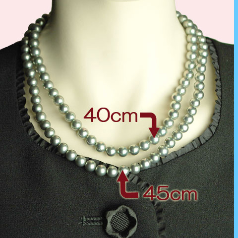 ▼8mm玉長さ40cm(金具部分を除く)グレー貝パール装着時
