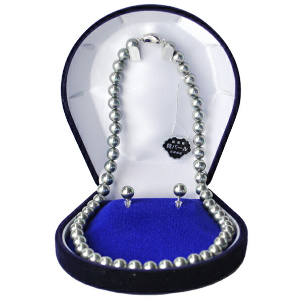 | POINT ・高級感がある本真珠のネックレスに使われるシルバーのビーンズ仕様のクラスプを使用しています。 ・貝パールの美しいグレー色のネックレスとピアスの化粧ケース付きのセットです。 ・ネックレス8ミリ珠の45cmのレングス、ピアス8ミリ珠と身に着けた時に映える大きさです。 ・礼服・喪服時の胸元のアクセサリーとしてお使いくださいませ。 |