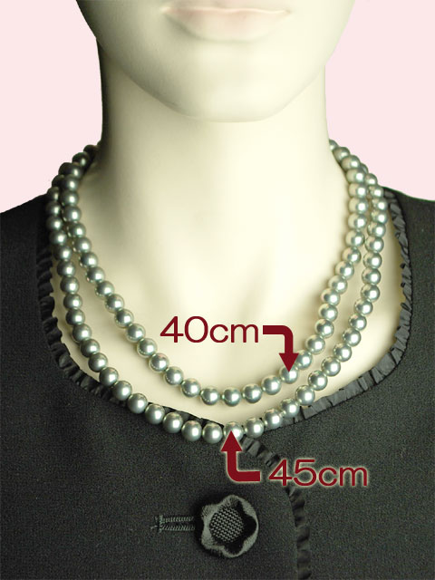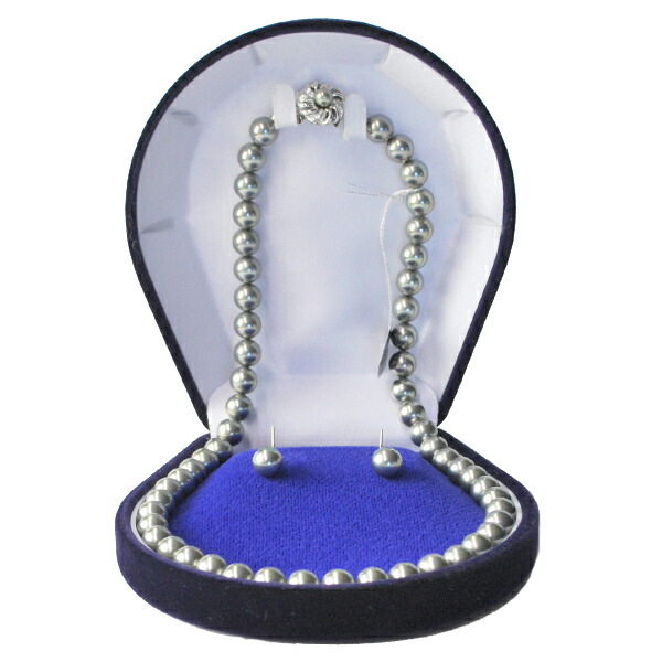 フォーマル用 高級金具の貝パール8mm玉 一連ロングネックレス&フックタイプピアス :KA082-8G45SH【グレー】(長さ45cm)※ケース付き レディース 婦人用 葬儀 葬式 葬祭 法事 法要 通夜 弔事 アクセサリー