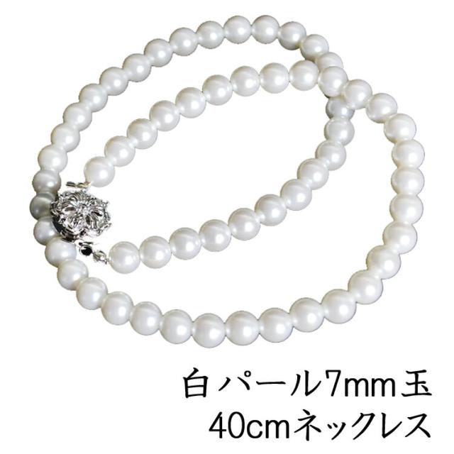 イミテーション フォーマル用 白パール色 7mm玉 金具王冠の一連ネックレス :KA108-7W40 ホワイト長さ40cm ケースなし ネコポス便発送可 レディース 婦人用 冠婚葬祭 卒業式 卒園式 入学式 入園式 パーティー 礼装 イベント