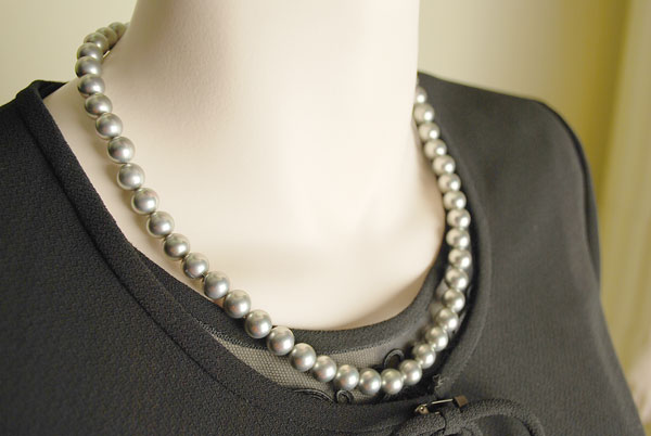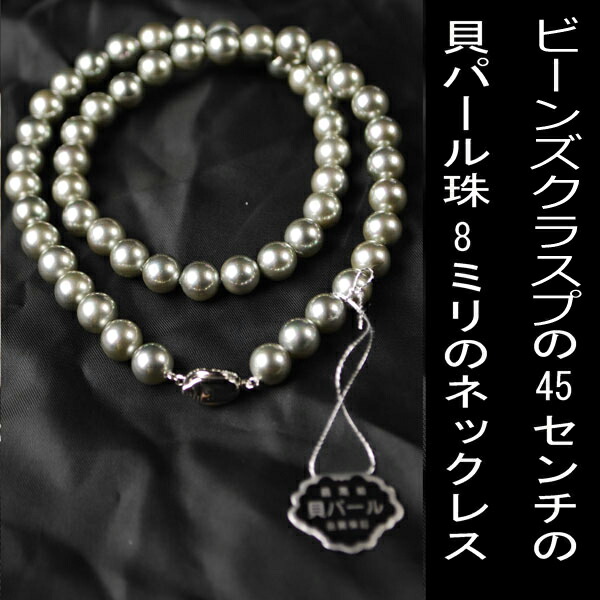 フォーマル用 ビーンズクラスプ 貝パール 8mm玉 一連ロングネックレス :KA213-8G45beans【グレー】(長さ45cm金具部分含まず)※ケースなし【ネコポス便発送可】レディース 婦人用 葬儀 葬祭 法事 法要 弔事