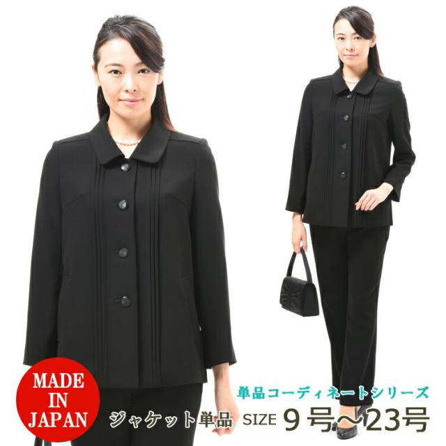 合物 ブラックフォーマル ジャケット (ボトム別売り):RL12062 or JI12008 レディース 婦人 礼服 喪服 【日本製】【9号〜23号】黒 大きいサイズ 冠婚葬祭 葬儀 葬式 通夜 法事 卒園式 卒業式 七五三 お宮参り スリーシーズン 女性用 礼装 ショールカラー プリーツ