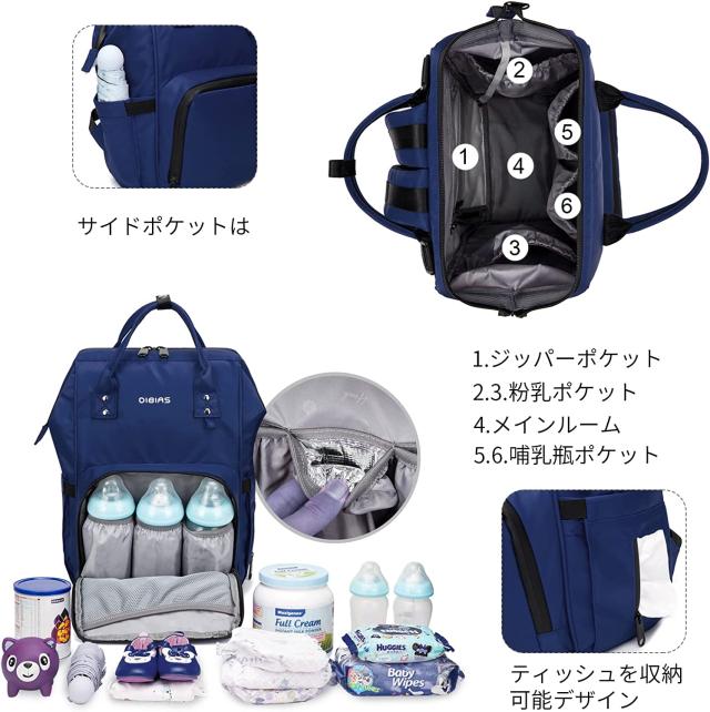 中には仕切りが多くて赤ちゃん連れでお出かけに必要なおむつや哺乳瓶などの収納や整理整頓をアシストします。