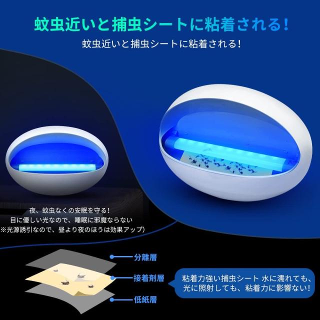 8W強力蚊除け、虫取り粘着シート+光源誘引式捕虫器:この誘虫灯は8Wの補虫蛍光管を内蔵してパワーアップ、蚊などを誘惑します。