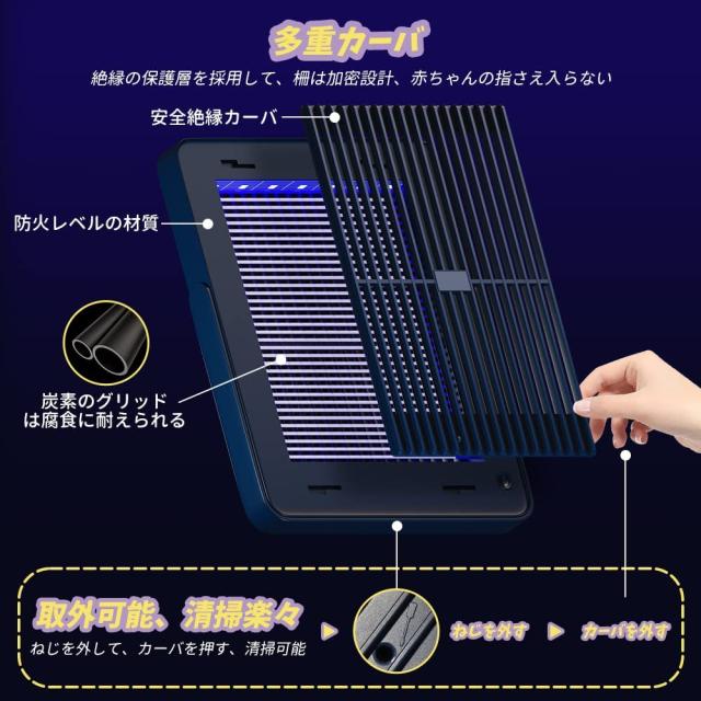 パシッとなどの騒ぎがなしに、火もなしに、内部には密集な静電ネット式な設計なので、虫などを逃げられないです。