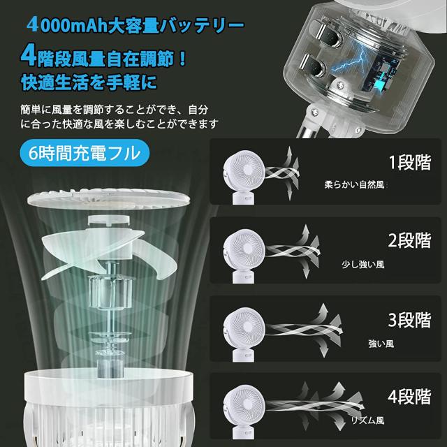 、4000mAhの大容量バッテリーが内蔵され、長時間のスタンバイが可能なファンです。