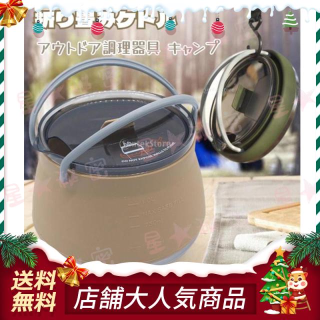 折り畳みケトル トラベルケトル やかん ポット アウトドア調理器具 キャンプ 旅行用 シリコン 湯沸かし器 直火可 ポータブル 折りたたみ式 省スペース 軽量