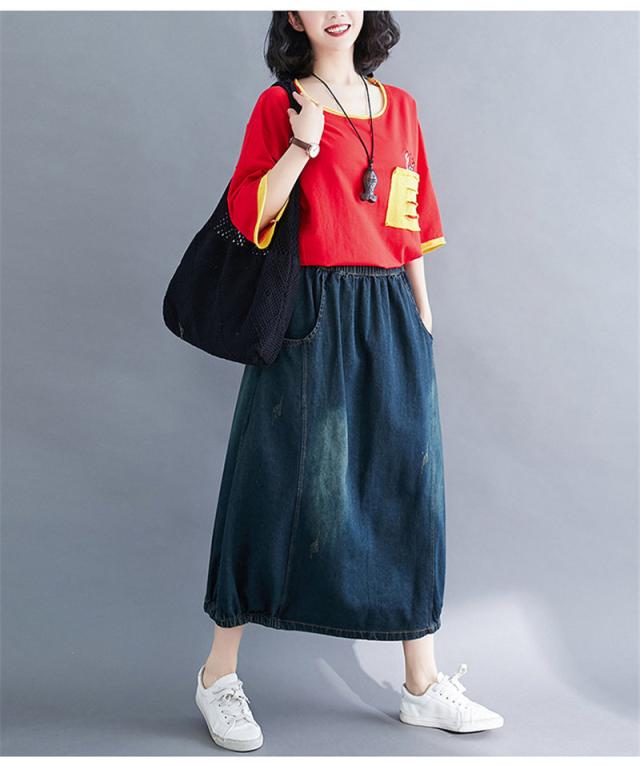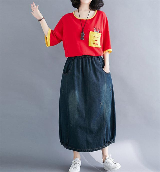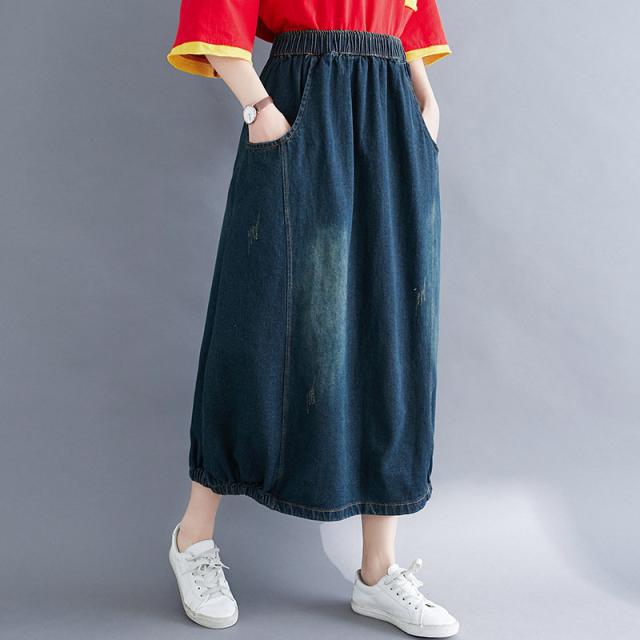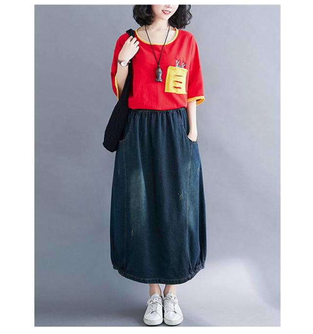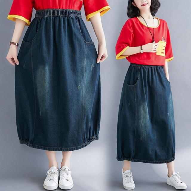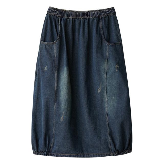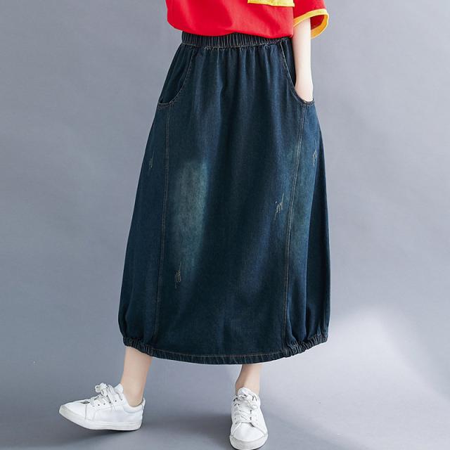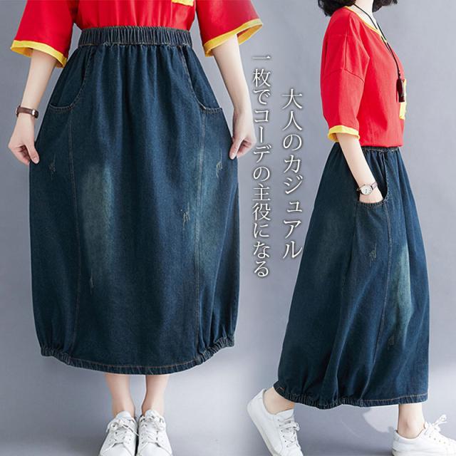 デニムスカート レディース 春秋 ロング丈 バルーンスカート ロングスカート デニム ランタンスカート マキシ丈スカート ボトムス