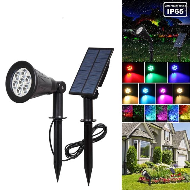 ソーラースポットライト 7LED 屋外用 RGB 多色切替 ガーデンライト 芝生・庭園ライト 自動点灯 防水 太陽光充電